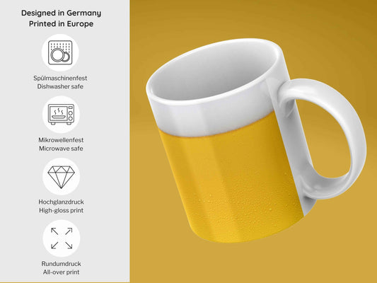 Bier-Look Tasse – Kaffebecher mit realistischem Bierdesign, perfektes Geschenk für Bierliebhaber - Keramiktasse