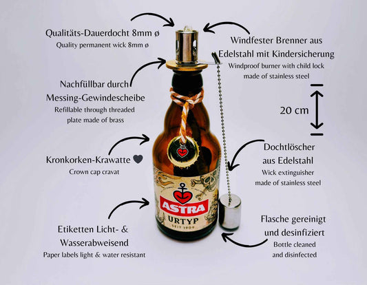 Astra-Öllampe "Hamburger Nachtlicht" | Handgemachte Öllampen aus Astra Bier-Flaschen | Upcycling Geschenk für Hamburg St. Pauli-Fans