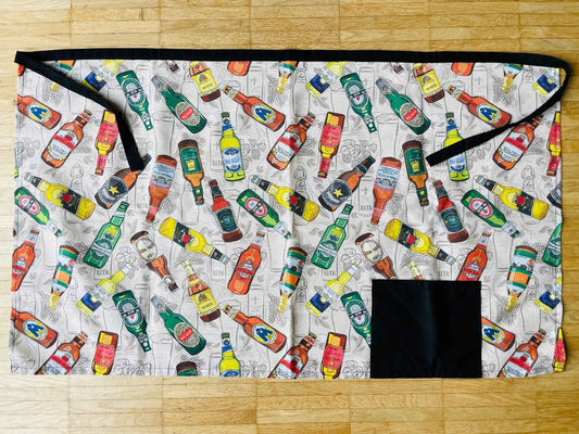 Bier Schürze | Grillschürze mit Bier-Motiv | Kochschürze mit Bier-Flaschen-Design | Vorbinder Schürze aus Stoff | Handgefertigt | 93x55cm