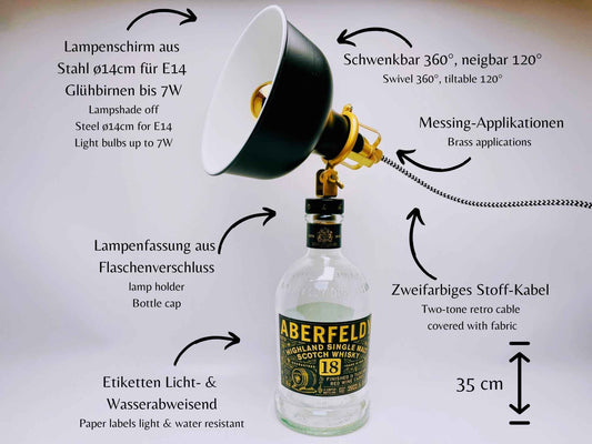 Aberfeldy Whisky Lampe | Handgemachte Upcycling Tischlampe aus Aberfeldy Whiskey | Einzigartige Geschenkidee | Deko-Licht | Schottland