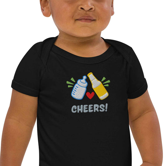 Baby Body mit Stick „Cheers!“ – Bio Baumwolle – Geschenk für neue Papas mit Bierliebe