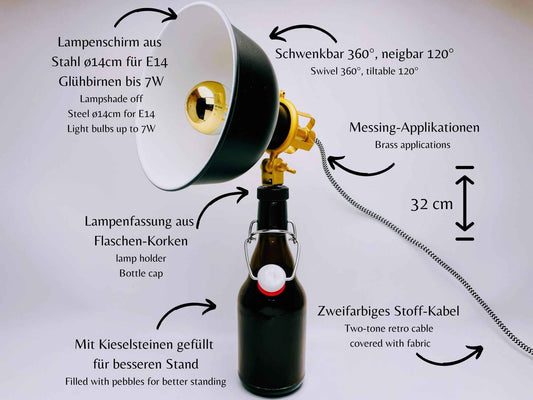 Bügelflaschen Lampe | Handgemachte Tischlampe aus Bierflaschen | Nachhaltige Upcycling Deko-Leuchte | Perfektes Geschenk für Bierliebhaber
