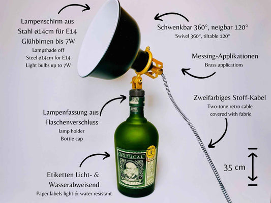 Botucal Rum Lampe | Handgemachte Upcycling Tischlampe aus Botucal Rum Flasche | Einzigartige Geschenkidee | Deko