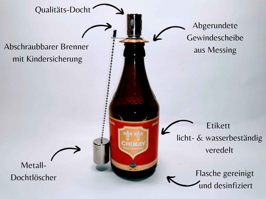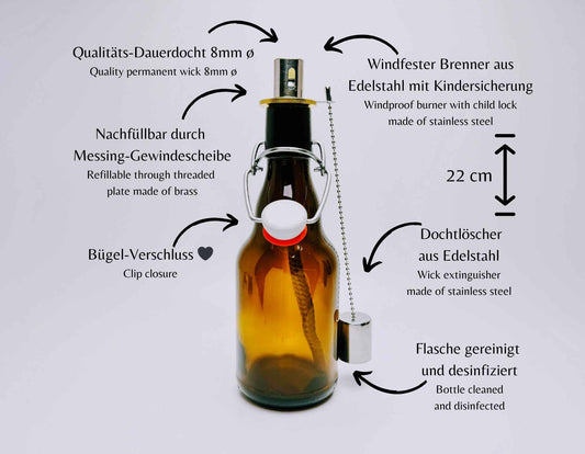 Bügelflaschen-Öllampe “Bügel Burner“ | Handgemachte Öllampe aus Bierflaschen | Ideal für Garten & Balkon | Perfektes Bierliebhaber Geschenk