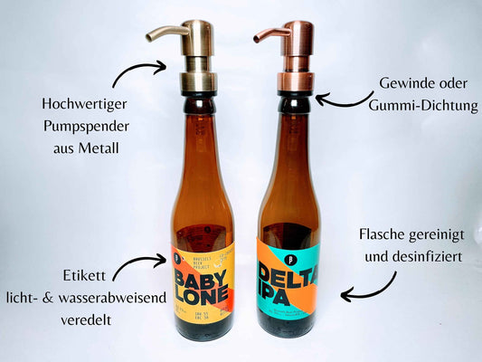 Crafbier-Seifenspender "Schaumkrone" | Handgemachte & nachfüllbare Seifenspender aus Craftbeer-Flaschen | Upcycling Geschenk für Bier-Fans