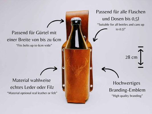 Bierholster Gürtelholster Getränkehalter für Bierflaschen | Einzigartiges Männergeschenk | Echtes Leder oder Filz | Karneval Fasching Kostüm