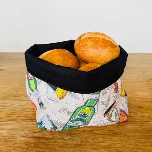 Brotkorb Bier-Motiv | Brotbeutel Bier-Flaschen-Design | Brötchentasche aus Stoff | Handgefertigt