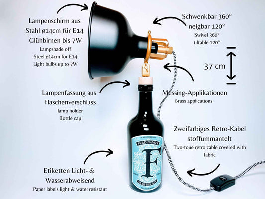 Ferdinands Gin Vintage-Lampe | Handgemachte nachhaltige Tischlampe aus Ferdinand Gin | Einzigartige Geschenkidee | Deko-Licht | Upcycling