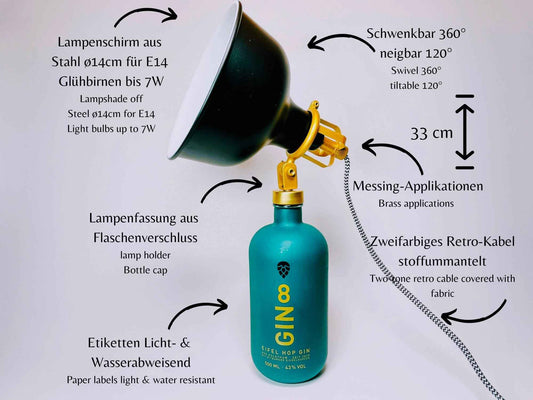 Gin 8 Vintage-Lampe | Handgemachte nachhaltige Tischlampe aus Gin 8 | Einzigartige Geschenkidee | Retro Deko-Licht | Upcycling Leuchte