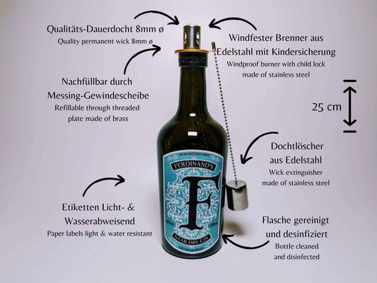 Gin Öllampe "Ferdinand" | Handgemachte Öllampe aus Ferdinand Gin Flaschen | Upcycling | Handgemacht | Individuell | Geschenk | Deko | H:25cm