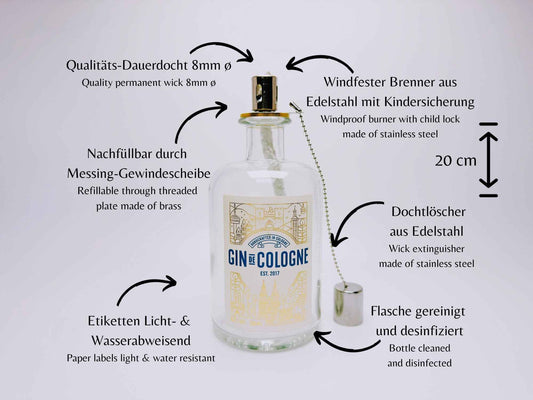 Gin Öllampe "Gin de Cologne" | Handgemachte Öllampe aus Gin de Cologne Flaschen | Upcycling | Handgefertigt | Individuell | Geschenk | Deko