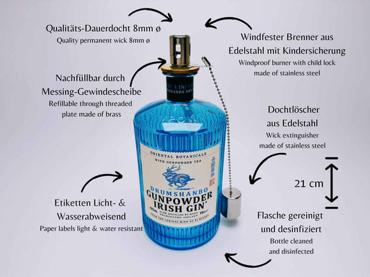 Gin Öllampe "Gunpowder" | Handgemachte Öllampe aus Gunpowder Gin Flaschen | Upcycling | Handgefertigt | Individuell | Geschenk | Deko | H:20