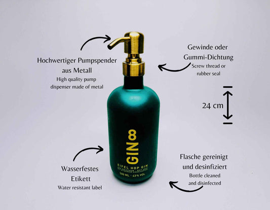 Gin 8 Seifenspender | Upcycling Pumpspender aus Gin 8 Flaschen | Nachfüllbar mit Seife, Lotion, Spüli, Bartöl | Bad Deko | Geschenk Eifel