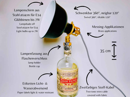 Don Papa Rum Lampe | Handgemachte Upcycling Tischlampe aus Don Papa Rum Flasche | Einzigartige Geschenkidee | Deko