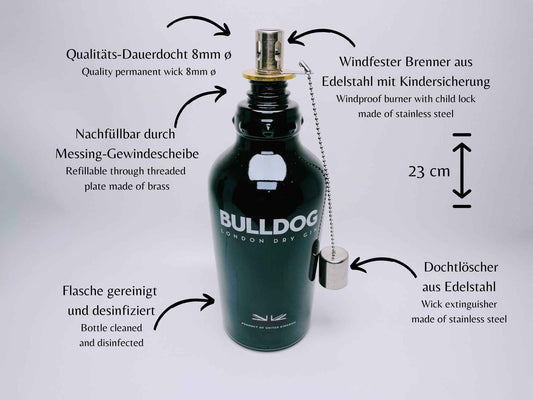 Gin Öllampe “Bulldog“ | Handgemachte Öllampe aus Bulldog Gin Flasche | Upcycling | Handgemacht | Individuell | Geschenk | Deko Balkon Garten