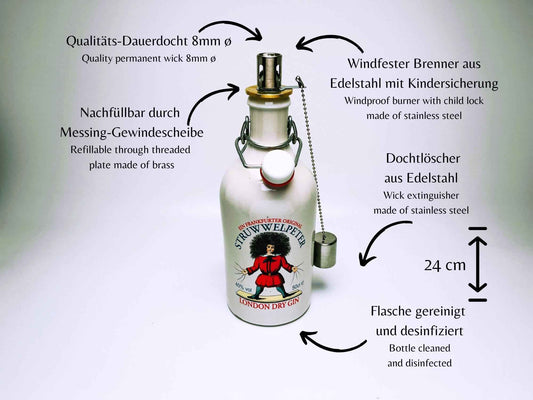 Gin Öllampe “Struwwelpeter“ | Handgemachte Öllampe aus Struwwelpeter Gin Flaschen | Upcycling | Handgefertigt | Geschenk | Deko | Frankfurt