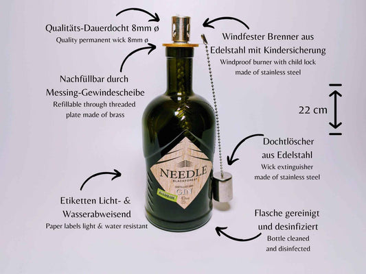 Gin Öllampe "Needle" | Handgemachte Öllampe aus Needle Gin Flaschen | Upcycling | Handgefertigt | Individuell | Geschenk | Deko | H:22cm
