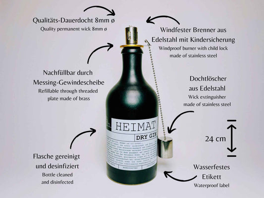 Gin Öllampe "Heimat" | Handgemachte Öllampe aus Heimat Gin Flaschen | Upcycling | Handgemacht | Individuell | Geschenk | Deko Balkon Garten
