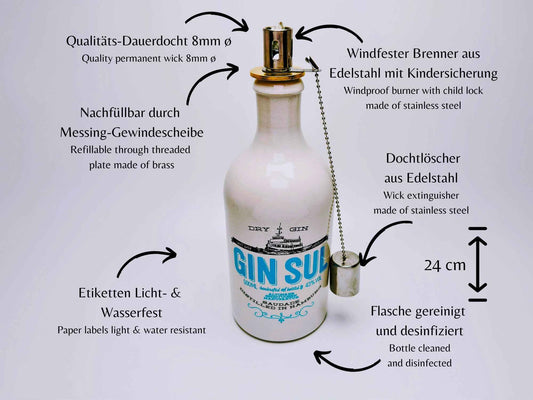 Gin Öllampe "Sul" | Handgemachte Öllampe aus Gin Sul Flaschen | Upcycling | Handgefertigt | Individuell | Geschenk | Hamburg | Deko | H:24cm