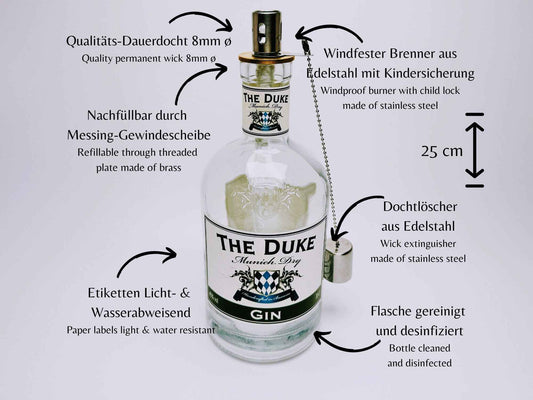 Gin Öllampe "The Duke" | Handgemachte Öllampe aus The Duke Gin Flaschen | Upcycling | Handgemacht | Individuell | Geschenk | Deko | H:25cm