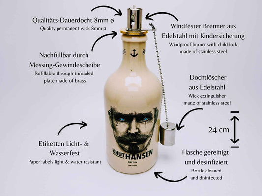 Gin Öllampe "Knut Hansen" | Handgemachte Öllampe aus Knut Hansen Flaschen | Upcycling | Handgefertigt | Individuell | Geschenk | Deko