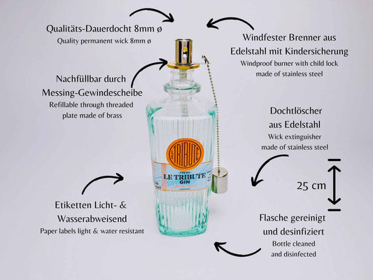 Gin Öllampe "Le Tribute" | Handgemachte Öllampe aus Le Tribute Gin Flaschen | Upcycling | Handgefertigt | Individuell | Geschenk | Deko