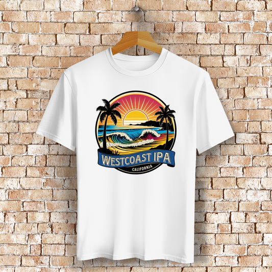 Westcoast IPA T-Shirt mit Strand, Palmen & Sonne – Bierliebe trifft Surf-Vibes - Bio-Baumwolle