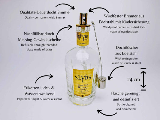Whisky-Öllampe "Slyrs Shine" | Handgemachte Öllampe aus Slyrs Whisky Flaschen | Upcycling | Individuell | Geschenk | München | Bayern | Deko
