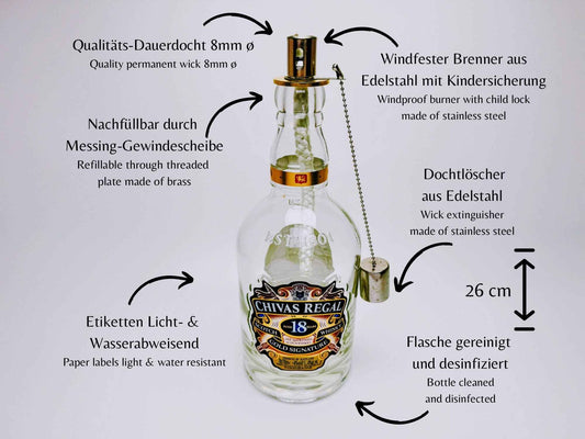 Whisky-Öllampe "Chivas Glow" | Handgemachte Öllampe aus Chivas Regal Flaschen | Upcycling | Individuell | Geschenk | Schottland | Deko