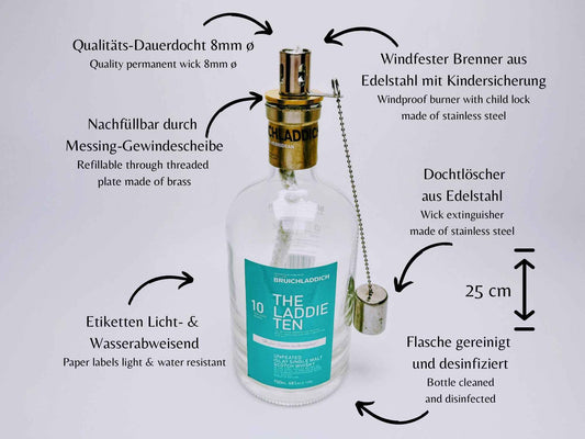 Whisky-Öllampe "Bruichladdich" | Handgemachte Öllampe aus Bruichladdich Flaschen | Upcycling | Individuell | Geschenk | Schottland | Deko
