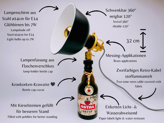 Astra Tischlampe aus echter Astra Bierflasche – Handgemachte Upcycling Retro Lampe mit warmem Licht – Geschenkidee für Hamburg St Pauli Fans