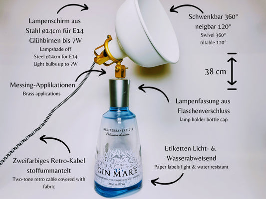 Gin Mare Vintage-Lampe | Handgemachte nachhaltige Tischlampe aus Gin Mare | Einzigartige Geschenkidee | Deko-Licht | Upcycling Leuchte