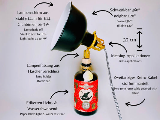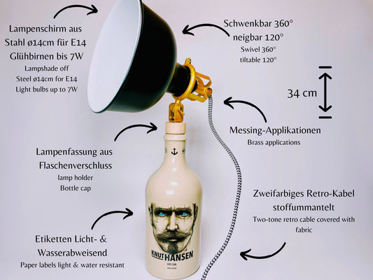Knut Hansen Gin Vintage-Lampe | Handgemachte nachhaltige Tischlampe aus Knut Hansen Gin | Einzigartige Geschenkidee | Deko-Licht | Upcycling