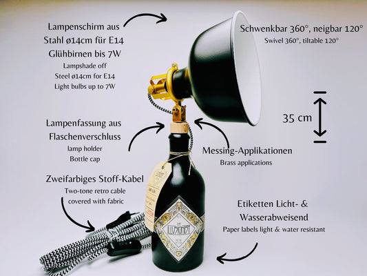 Gin Tischlampe aus echter Ginflasche – Handgemachte Design Lampe im Industrial Look – Upcycling Deko Lampe – Geschenkidee für Gin Liebhaber