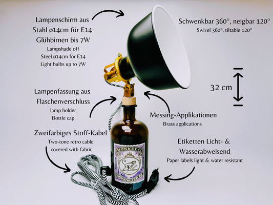 Monkey47 Gin Vintage-Lampe | Handgemachte nachhaltige Tischlampe aus Monkey 47 Gin | Einzigartige Geschenkidee | Deko-Licht | Upcycling