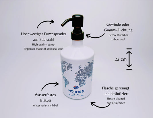 Gin-Seifenspender "Nordes" | Upcycling Pumpspender aus Nordes Gin-Flasche | Nachfüllbar mit Seife, Spüli | Bad Deko | Geschenk Spanien