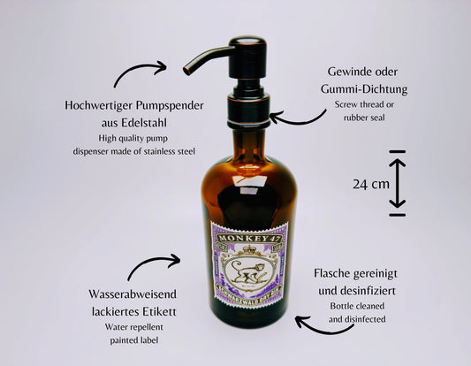 Gin-Seifenspender "Monkey 47" | Upcycling Pumpspender aus Monkey47 Gin Flasche | Nachfüllbar mit Seife | Bad Deko | Geschenk Schwarzwald