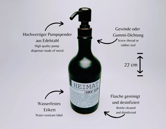 Gin-Seifenspender “Heimat” | Upcycling Pumpspender aus Heimat Gin Flaschen | Nachfüllbar mit Seife, Spüli | Deko Bad Geschenk | 500ml