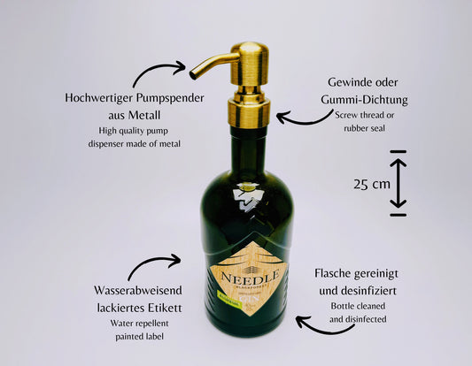 Gin-Seifenspender "Needle" | Upcycling Pumpspender aus Needle Gin Flasche | Nachfüllbar mit Seife, Spüli | Bad Deko | Geschenk Schwarzwald