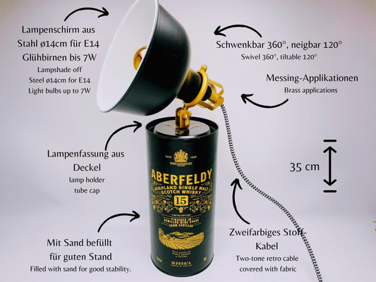 Aberfeldy Whisky Lampe | Handgemachte Upcycling Tischlampe aus Aberfeldy Whiskey | Einzigartige Geschenkidee | Deko-Licht | Schottland