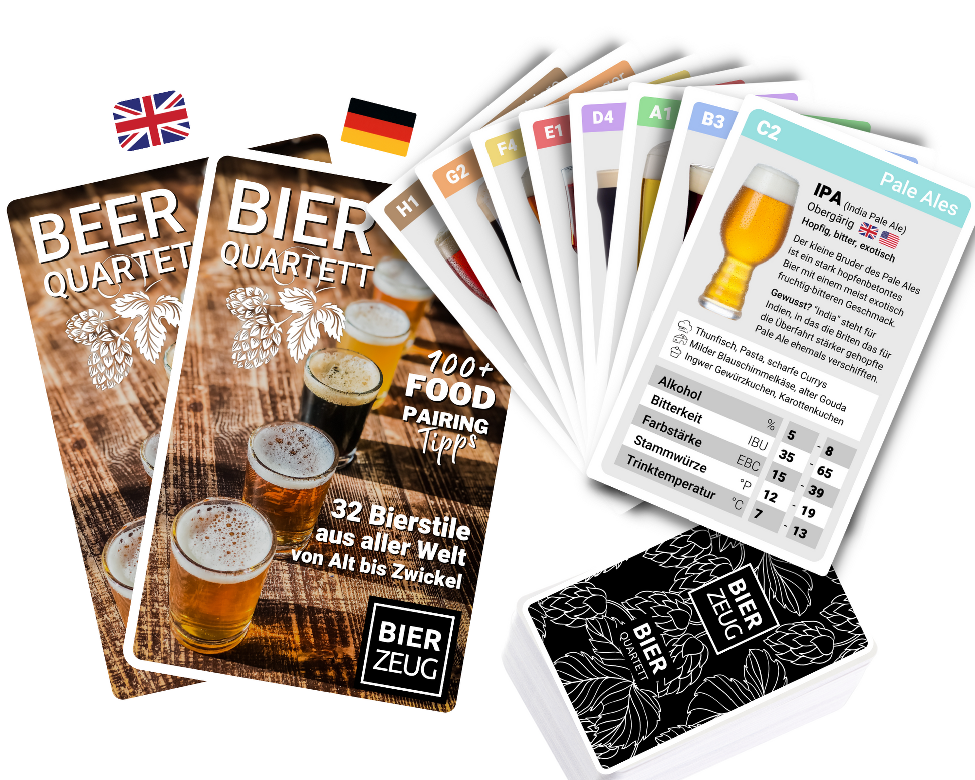 BIER-QUARTETT | Das ultimative Bier-Lernspiel | 32 Bierstile aus aller Welt von Alt bis Zwickel | 100+ Food-Pairing-Tipps | 2-4 Spieler