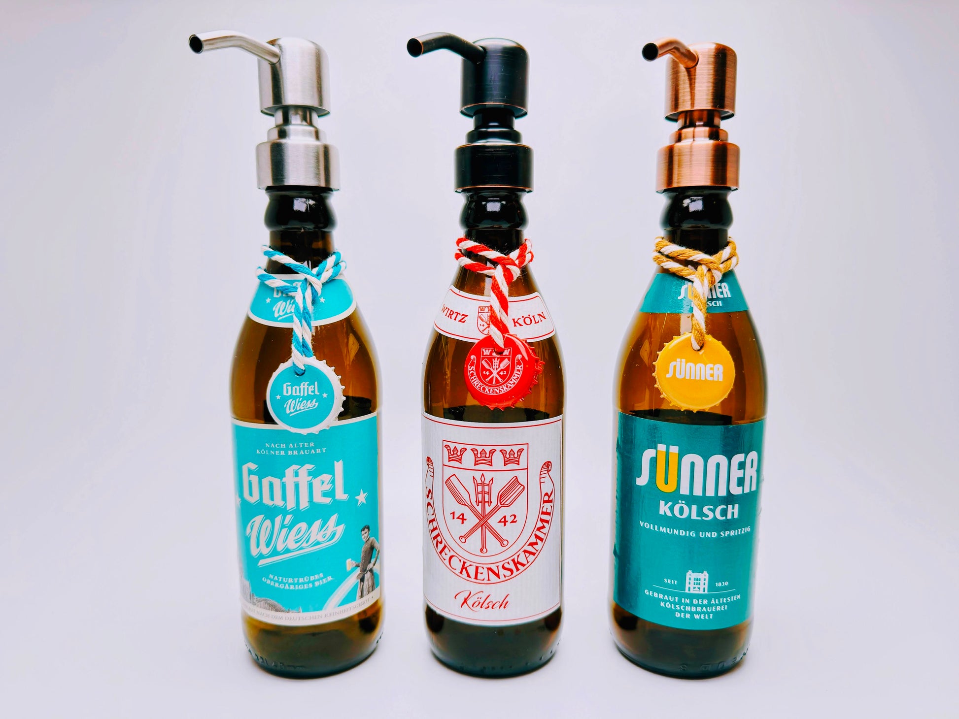 Kölsch-Seifenspender "RheinSchaum" | Handgemachte & nachfüllbare Seifenspender aus Kölsch Bier Flaschen | Upcycling Geschenk für Köln Fans